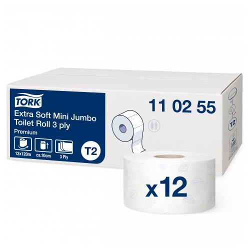 długość rolki- 120m | ilość warstw- 3 | ilość w opakowaniu- 12 rolek | poziom jakości- premium papier toaletowy mini jumbo zapewnia wysoką jakość, miękkość i wydajność, idealny do średniej wielkości łazienek dozownik- 555000, 555008, 460006