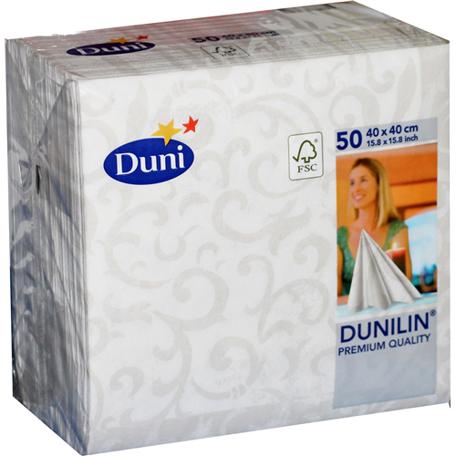 Dunilin to serwetki premium stosowane podczas kolacji i bankietów. Wyjątkowo dekoracyjna zewnętrzna powierzchnia przypomina len. Spód serwetki jest natomiast aksamitny i przyjemny w dotyku. Serwetki Dunilin produkowane są podczas specjalistycznego procesu bez użycia wody, co sprawia, że są bardzo przyjazne dla środowiska.