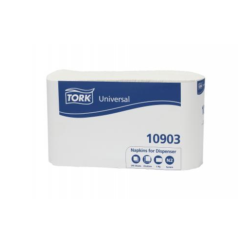 Białe, 1-warstwowe serwetki dyspenserowe Tork Fastfold to idealne rozwiązanie dla lokali samoobsługowych, w których liczy się niski koszt użytkowania.