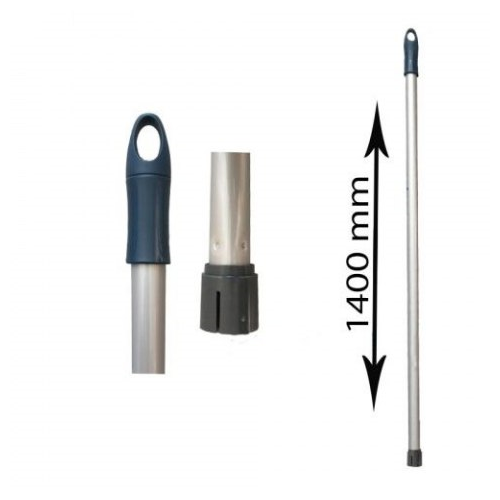 długość- 140cm ekonomiczny kij wykonany z aluminium z wciskaną końcówką, drążek posiada otwór do powieszenia