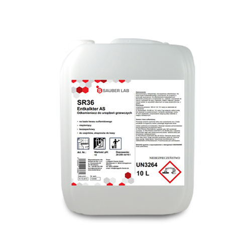 pojemność- 10l | pH- <2 skoncentrowany, niskopieniący, bezzapachowy odkamieniacz do pralek, zmywarek do naczyń, expresów do kawy, czajników, kotłów, bojlerów, pieców, na bazie kwasu sulfamidowego