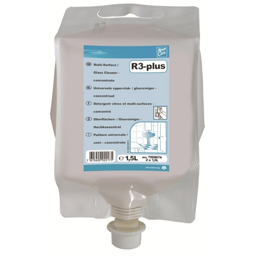 Room Care R3-plus jest skoncentrowanym, uniwersalnym preparatem przeznaczonym do mycia powierzchni szklanych i wielu powierzchni zmywalnych (np. lustra, okna, powierzchnie laminowane, kafelki, glazura). Jest wysoce skutecznym produktem o neutralnym pH. Room Care R3-plus jest preparatem szybkoschnącym. Produkt został opracowany tylko dla systemów Divermite/ DQFM Diversey. Room Care R3-plus oparty jest na wyjątkowej technologii O.N.T., która efektywnie neutralizuje nieprzyjemne zapachy, pozostawiając na długo przyjemny i świeży zapach.