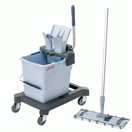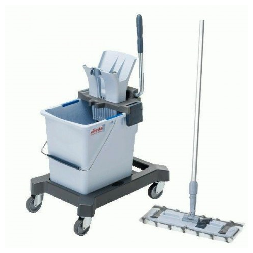 Starter Kit (platforma jezdna, wiadro 25l, prasa, uchwyt do mopa, mop Microlite). Brak kija w zestawie.